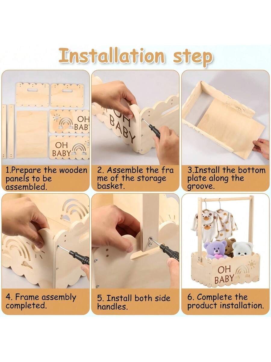 Houten babyshowercadeaus, kratkast, stevige doe-het-zelf baby-opbergkist, mand voor nieuwe ouders, babyshowerdecoraties, krat met handvat, babybenodigdheden, kinderkamerdecoratie, speelgoedopslag